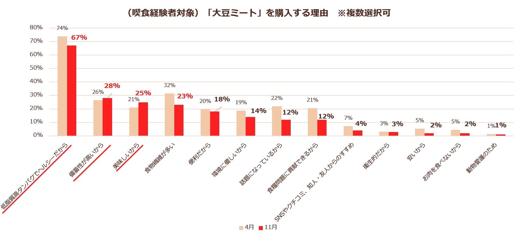 ~「大豆ミート」の購入理由は、話題性やトレンド感から、ヘルシー、備蓄性、美味しいなどの実用性重視に変化。~